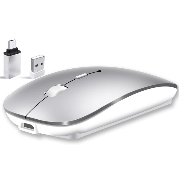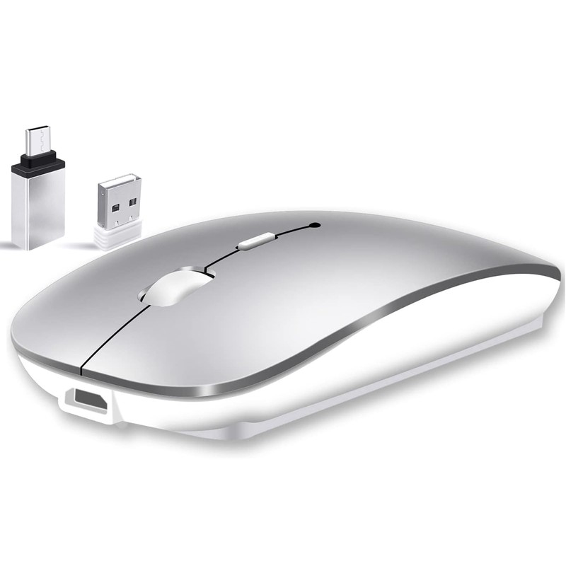 Qxvnm DE Wireless Mouse Bluetooth (USB + BT+ USB-C Adapter) Wireless Mouse Silver
