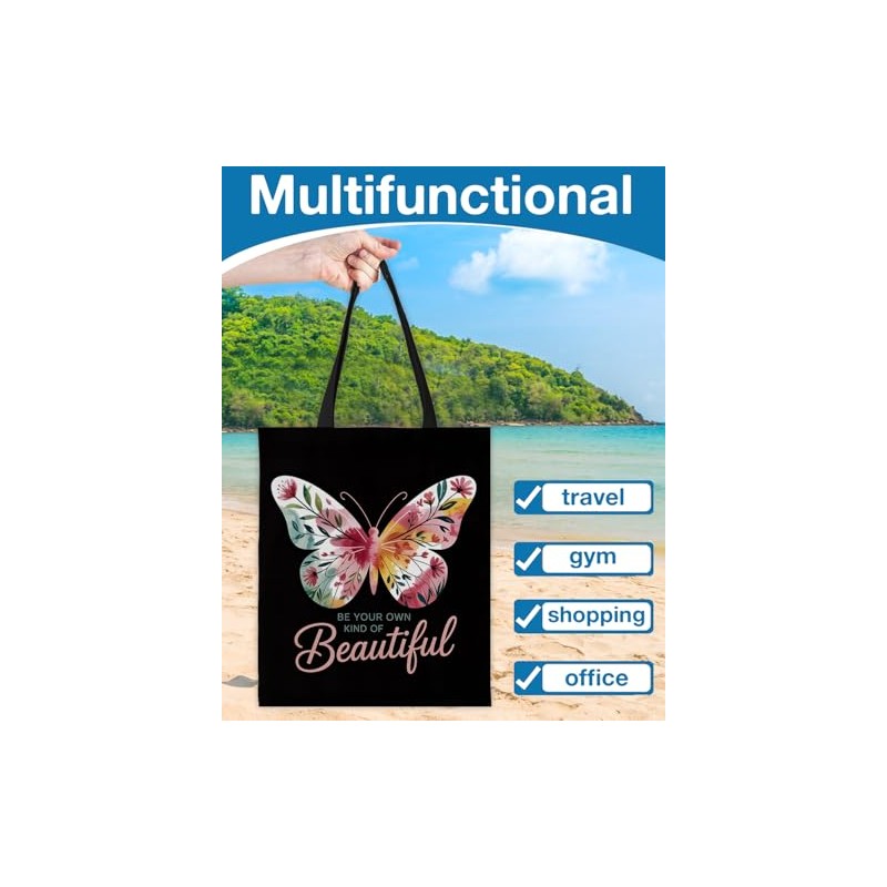 - Capacity:This canvas tote bag is beautiful and cute,with a large capacity and upgraded size.Approximately 14 x 15.7 inches, long handle about 11.5 inches. Large storage space to meet daily needs.