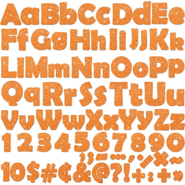 - 【Package Includes】4 inches glitter orange Letter Numbers Alphabet Punctuation Symbol Cutouts Combo Pack includes 66 pieces uppercase letters, 98 pieces lowercase letters, 30 pieces numbers 0-9, 52 pieces punctuation marks, and 14 pieces symbols. Enough for your daily needs and sharing.