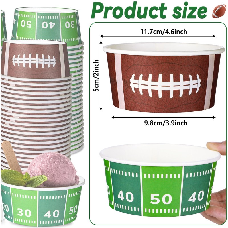 - 【Save Time】These large paper football snack bowls could be used for a ice-cream, salad, barbecue, chips, popcorn, chicken nugget and so one. You can choose to simply throw them away after the party since they are disposable, allowing you to spend more time enjoying happy moments with your family and friends.
