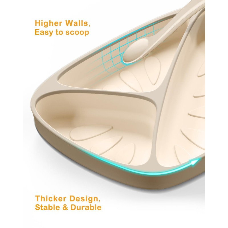 • Best Baby's First Plate: 3 divided plates for different types of foods to help babies serve up a balanced meal, the deepened design up to 21oz can hold more foods, even soup. The wall of the plates are arching help baby easy to scoop food without getting it all over the table. Come with a soft silicone spoon which is design in non-slip grip, easy for baby to hold, and protect delicate gums and teeth. Perfect for your older baby's transition to self-feeding, for 6 months - 3 years.