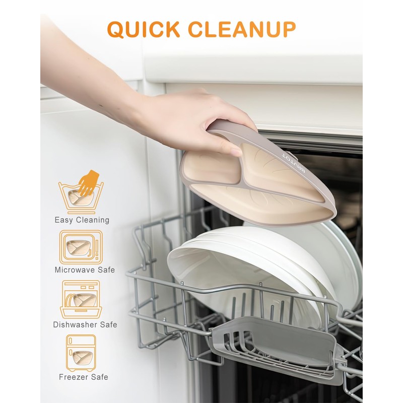 • Practical Training Plates for Baby: Our thicken silicone plates with suction is durable and stable in violence pull of babies, not easy to be corroded and residual cleaning agents. Silicone utensils Temp. endurance about -104 °F to 392 °F, can safely be popped into the microwave, dishwasher, oven and freezer, wash it by hand and it only takes less than a minute.