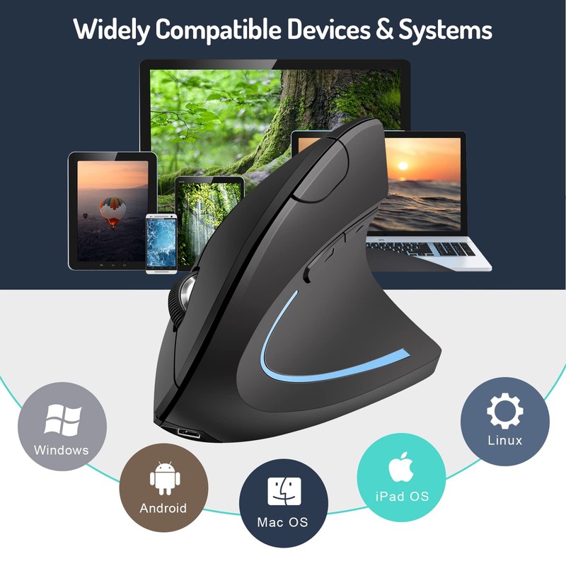 • 【Rechargeable Wireless Mouse & Intelligent Auto Sleep】This wireless ergonomic mouse has a built-in rechargeable battery and a USB charging cable. The dual model 2.4G/5.2 Bluetooth allows you to work wirelessly within 10 metres. Great power saving function, intelligent auto sleep mode can extend battery life better, click any button to wake it up.
