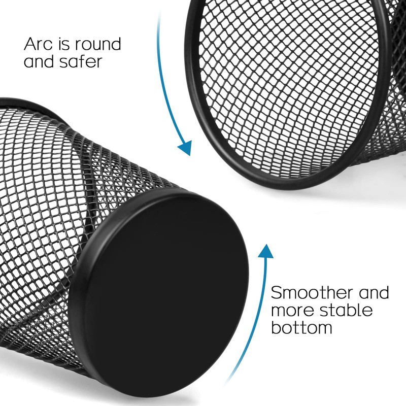 • Round metal mesh pencil holder with smooth edges for comfortable grip