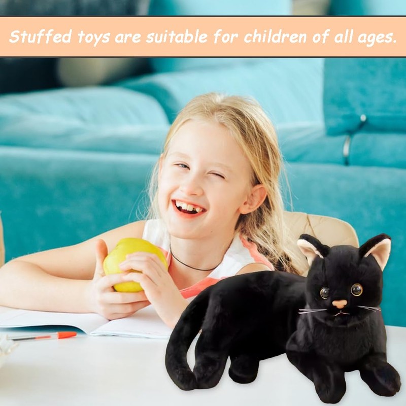 QYJMLH Black Cat Plush Toy, Cat Cuddly Toy, Cuddly Toy, Lifelike, Stuffed Lifelike Cat Plush Toy for Home Decoration, Photography Props, 30 cm