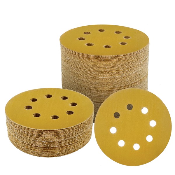 QYQRQF 100pcs 5 Inch Sanding Discs Hook and Loop, 320 Grit 8 Holes Sandpaper ...