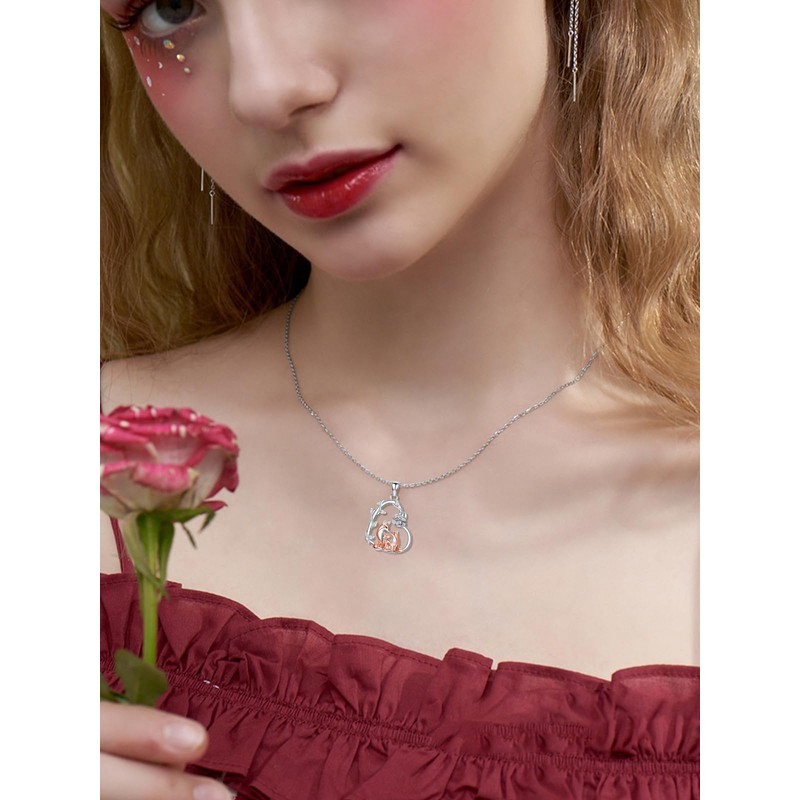 - Fox Necklace Design:The little cat is acting coquettishly to the big cat, what a warm picture under the heart-shaped rose frame, just like we are acting coquettishly to our mother. This is a special cat jewelry that allows you to express your love for your mother
