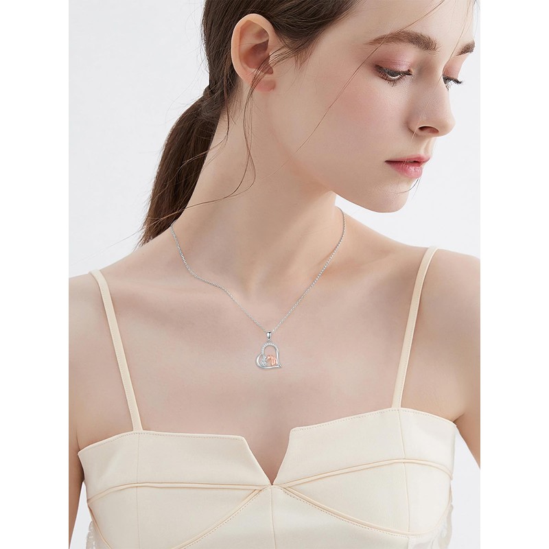Qyvit Horse Necklace 925 Sterling Silver Heart Horse Pendant Necklace Cute Animal Horse Jewelry for Horse Lover Gifts for Women