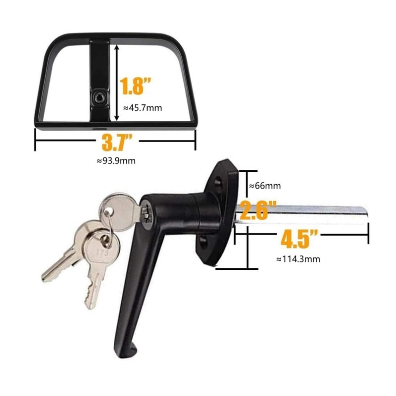 - 1. Shed Door Lock with Handle includes outside locking L-Handle, inside D-Handle and Keys, Screws and Hex Key.