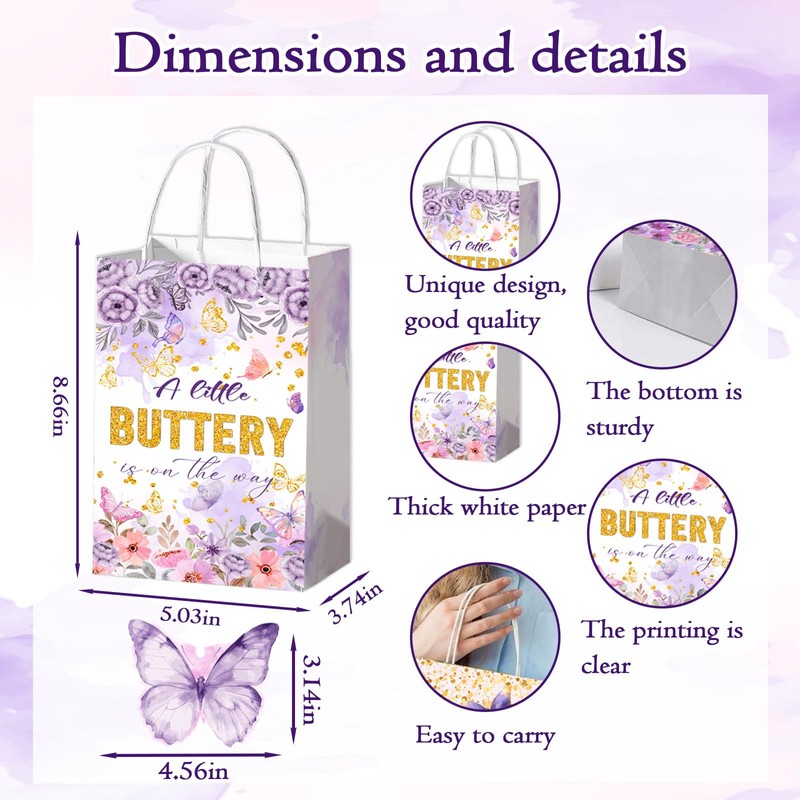 QZCYU 32pcs Baby Shower Girl Gift Bag With Handle And Butterfly Cards, Butterfly Gift Bags For Party Favors, Baby Girl Gift Bags For Baby Shower Birthday Decorations Party Supplies