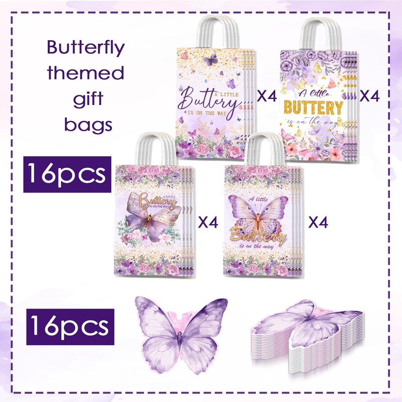 QZCYU 32pcs Baby Shower Girl Gift Bag With Handle And Butterfly Cards, Butterfly Gift Bags For Party Favors, Baby Girl Gift Bags For Baby Shower Birthday Decorations Party Supplies
