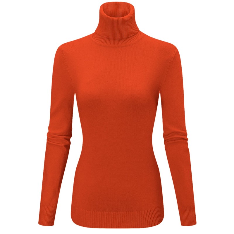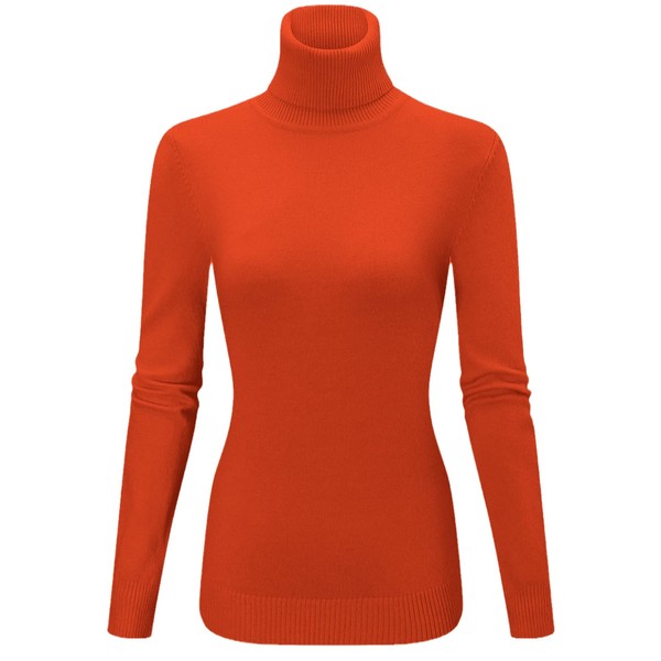 QZH.DUAO Women's Fashion Basic Solid Turtleneck Knit Sweater, 1# Orange, Large