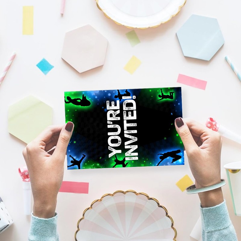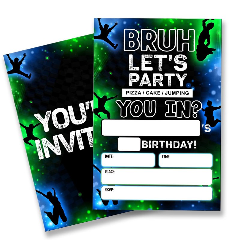 QZJ Jump Birthday Invitation Supplies with Envelopes Set of 20 Bruh Birthday Party Invitation Fill in Blank, Double Sided