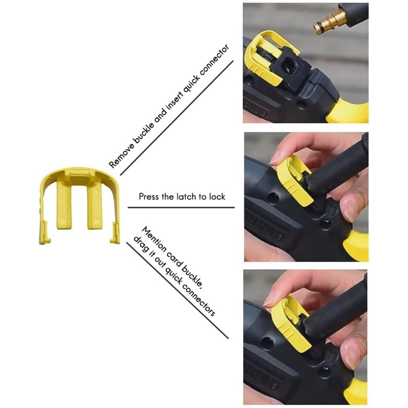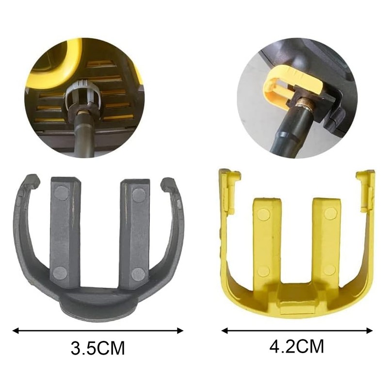 - 【Color-Coded for Easy Identification】This set includes 2 yellow and 2 grey c clips, designed for different connection points. Yellow clips (4.2×4.2 cm) for hose-to-machine and grey clips (3.5×3 cm) for hose-to-gun—ideal for any karcher hose gun setup. The bright colors make them easy to identify and install
