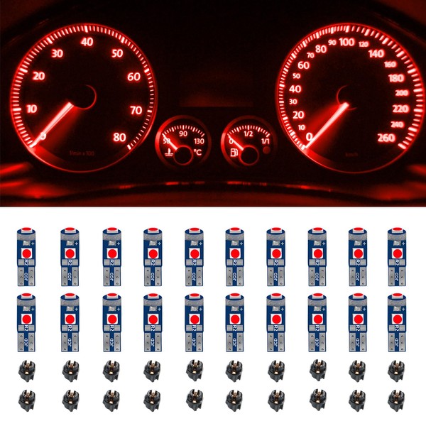 QZTYTY 20PCS T5 LED Lights for Car Dashboard, Led Dash Lights, T5 37 74 LED Bulb with Twist Lock Socket PC74 PC37, 3030 Chips Bright 12V Light Replacement for Dashboard Panel Indicator (Red)
