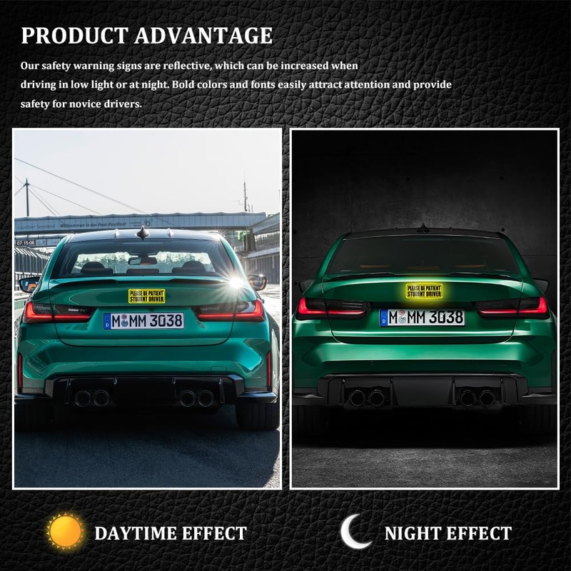 - [Reflective features] : The student driver sticker magnet for car has a good reflective effect, so that it can be noticed at night or in the case of low visibility, with an obvious warning effect, effectively improve the safety of daily travel
