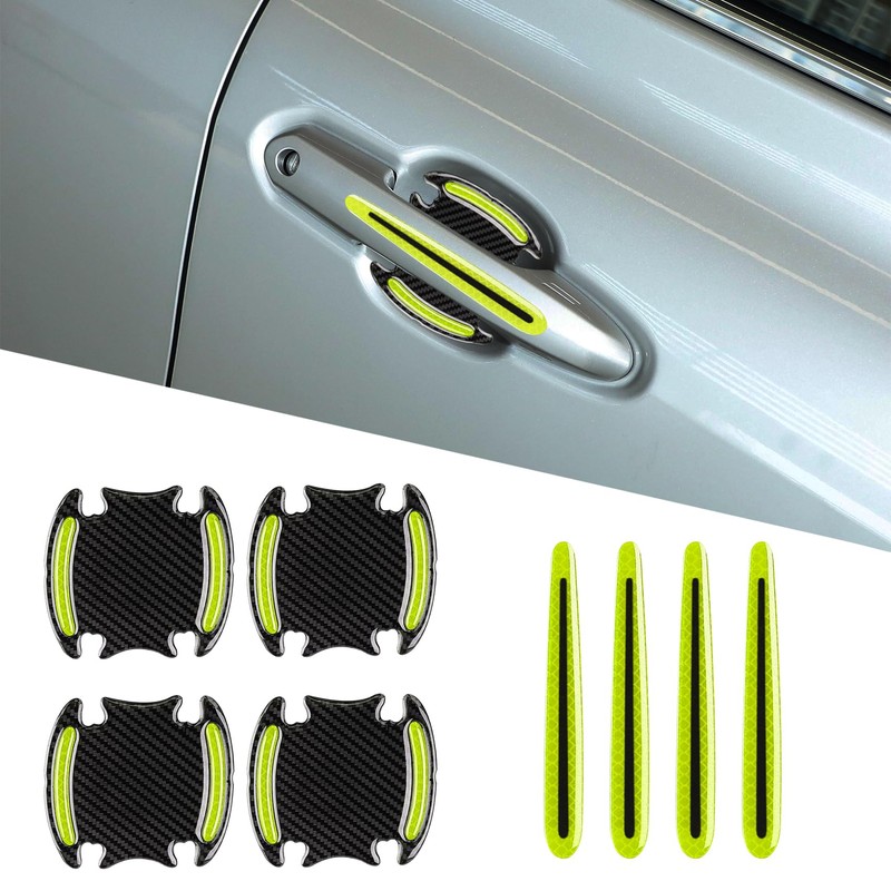 QZTYTY 8PCS Car Door Handle Protector Reflective Stickers, Universal 3D Carbon Fiber Scratch Protectors, Green