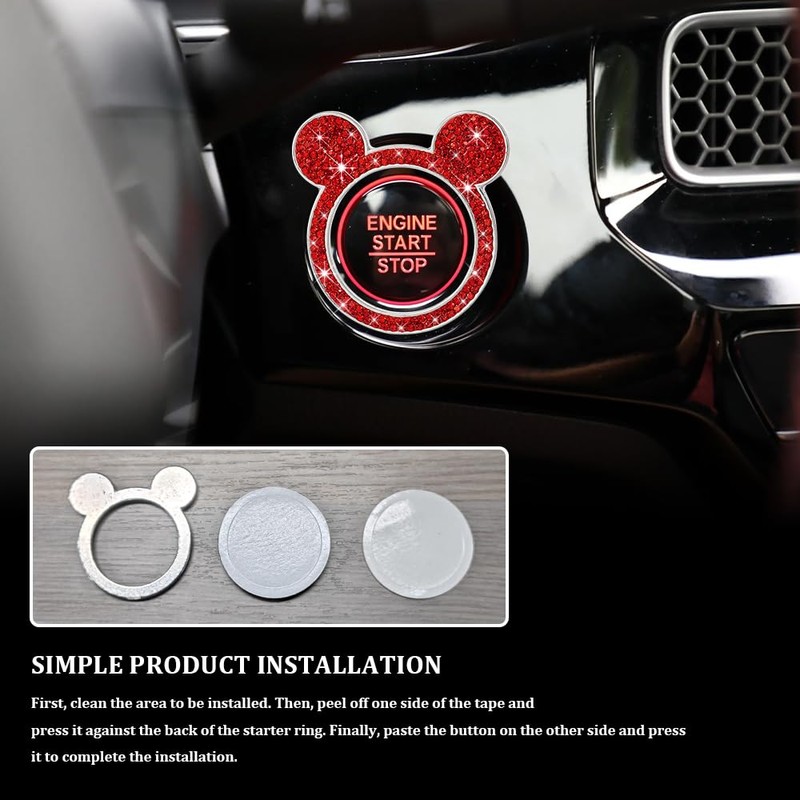 - [Decorative function] : This car engine start button cover has the function of beautifying the interior of the car, the design of two small ears, lovely and shiny, makes the start button look new, and also can highlight the owner's personality and taste, so that your car stands out in many vehicles