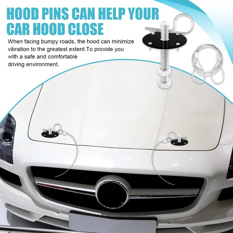 - [Main function] : These locking hood pins kit for car can help firmly lock the hood/engine cover of the car, avoid vibration or accidental opening of the hood when driving at high speed or on bumpy roads, improve driving safety and protect car parts
