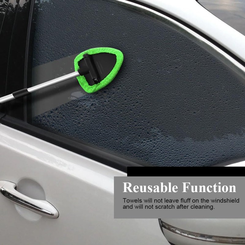 The inside windshield cleaning tool is designed with a retractable handle to help reach hard-to-reach areas