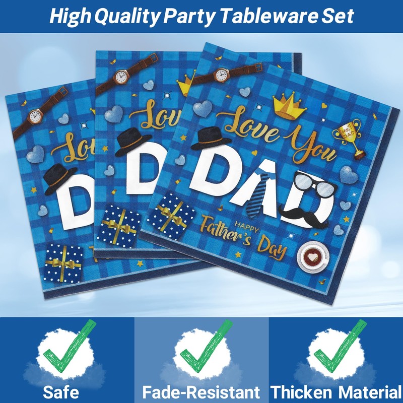 - Enjoy Party And Save Time: You will be able to throw a Father's Day party that impresses your guests the entire night. When the party is over, you can spend more time with family or friends and less time cleaning up. That's why we designed this Father's Day party tableware set.