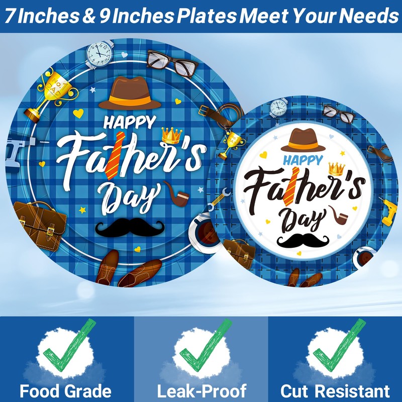 - Excellent Quality: All of our Happy Father's Day party plates are made of high-quality 350 GSM paper. They are non-toxic, odorless, heat-resistant. The patterns and colors are printed with precision and are fade-resistant, ensuring that your Father's Day decoration is filled with a festive atmosphere and joyful memories.
