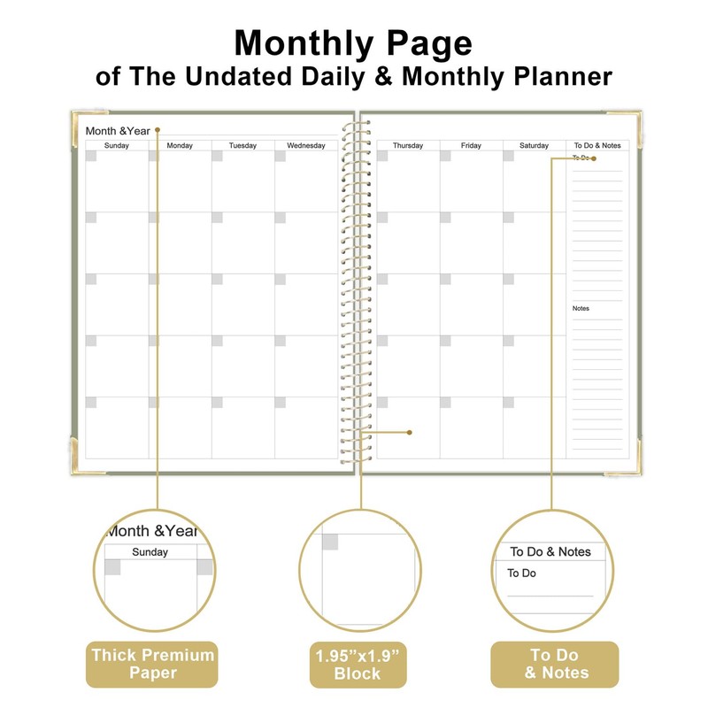 - Free From Boundaries - Break free from dated grids, Your life moves to its own unique rhythm – why conform to pre-printed calendars? Start on any day you choose. Every blank page is a field of possibilities. The daily monthly planner is undated so you can start to add structure to your schedule and cultivate new planning habits right away! Beat procrastination, boost happiness & make each day count with the hourly planner.