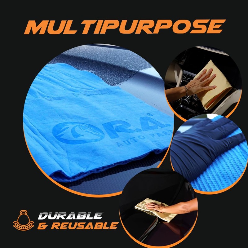 R.A. 3D Premium Fast Drying Shammy Towel for Car 3pack - Super Absorbent Chamois Towel for CAR - Cloth for Car Drying - Reusable Soft Car Wash Cloth - Dust Remove, No Scratch/Spot/Streak.
