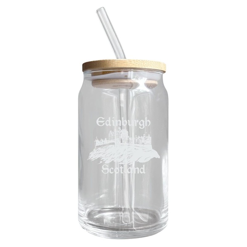 R and R Imports Edinburgh Scotland Design Souvenir 12 oz Engraved Beer Can Glass 4-Pack
