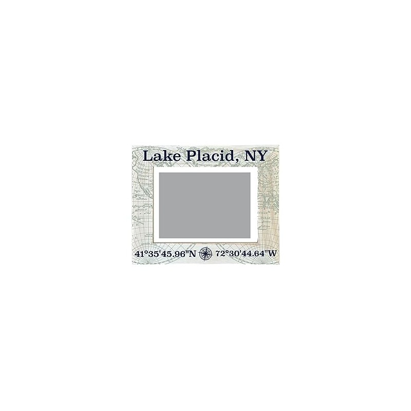 R and R Imports Lake Placid New York Souvenir Wooden Photo Frame Compass Coordinates Design Matted to 4 x 6