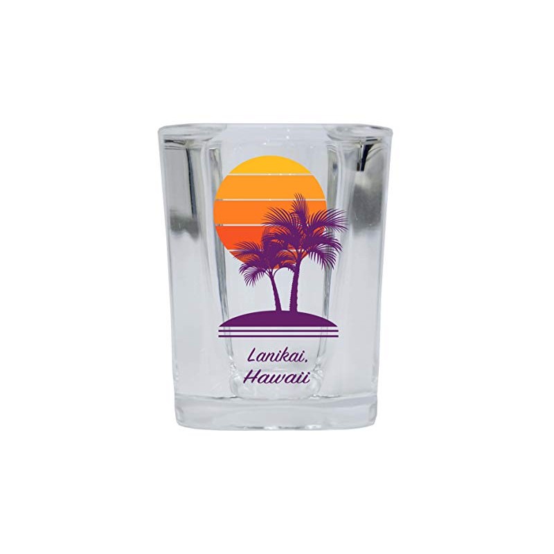 R and R Imports Lanikai Souvenir 2 Ounce Square Shot Glass Palm Design 4-Pack