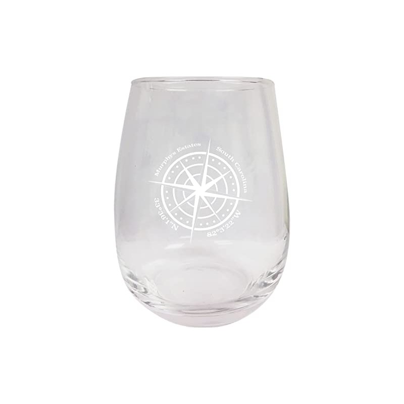 R and R Imports Murphys Estates South Carolina Souvenir 15 Ounce Laser Engraved Stemless Wine Glass Compass Design 2-Pack
