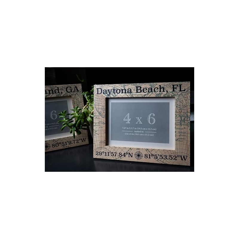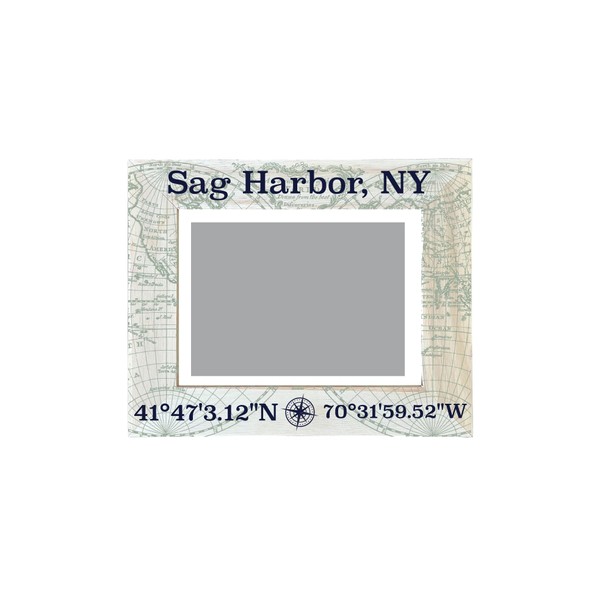 R and R Imports Sag Harbor New York Souvenir Wooden Photo Frame Compass Coordinates Design Matted to 4 x 6
