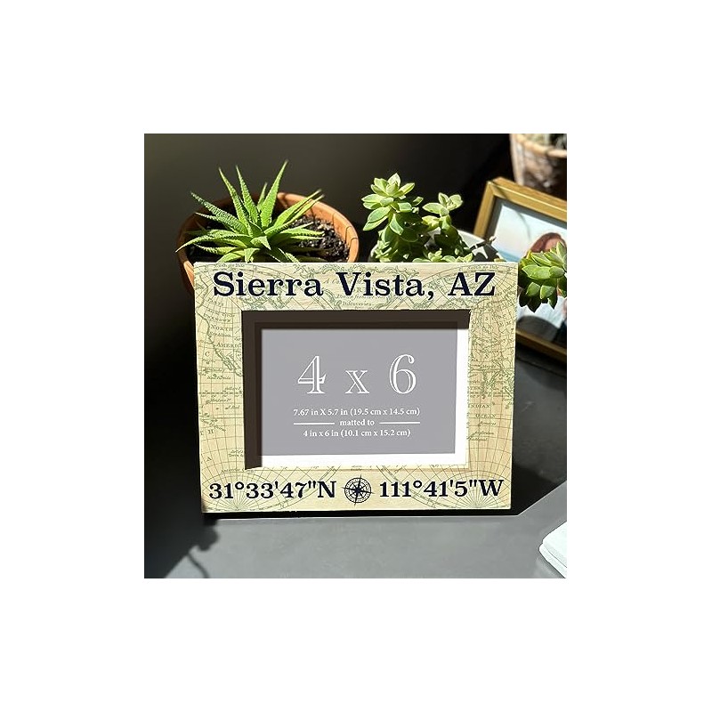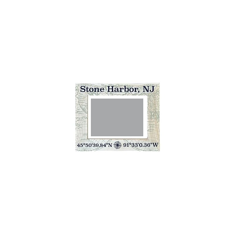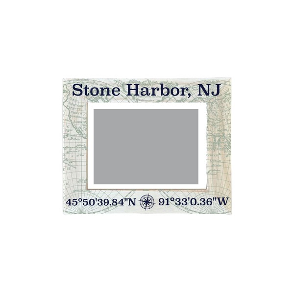 R and R Imports Stone Harbor New Jersey Souvenir Wooden Photo Frame Compass Coordinates Design Matted to 4 x 6