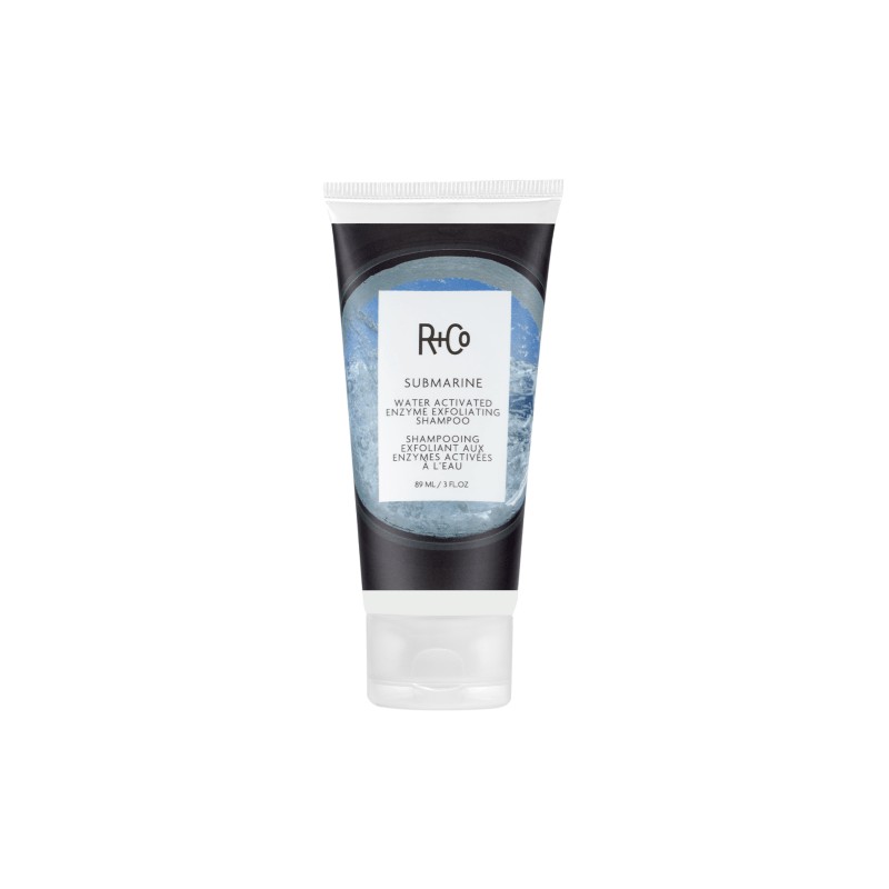 R+Co SUBMARINE Water Activated Enzyme Exfoliating Shampoo 89ml is a revitalizing exfoliating product that uses naturally-derived enzymes and alpha hydroxy acids from fruit to cleanse away excess flakes, oils, and buildup for fresh hair and a fresh scalp.