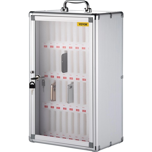 The VEVOR 36 Slots Cell Phone Cabinet Silver Aluminum Alloy Pocket Chart Storage Locker Box is the perfect solution for organizing and securing cell phones in various settings such as classrooms, offices, and gyms. With its high-security design and versatile features, this storage locker box provides convenience and peace of mind.