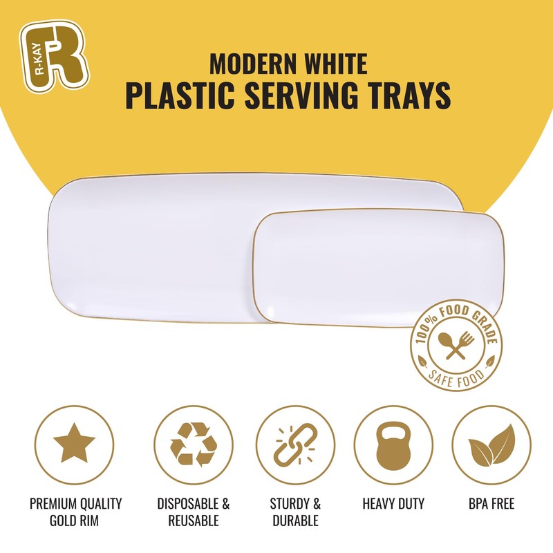 - STURDY, DURABLE AND HEAVY DUTY: White and gold serving trays and platters is Crafted to last and endure frequent use, our heavy-duty platters for serving food are impressively sturdy and durable, the disposable serving tray provides a reliable, unbreakable option for any event.