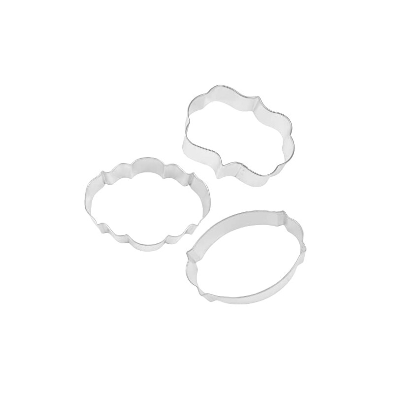 - This 3-piece set includes 4" elegant plaque, 3.5" plaque, and 3.75" cameo plaque cookie cutters