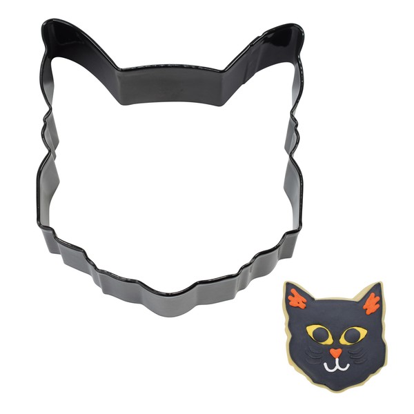 R&M Cat Lover's Cookie Cutter, Cat Face Cookie Cutter, 3.5", Black