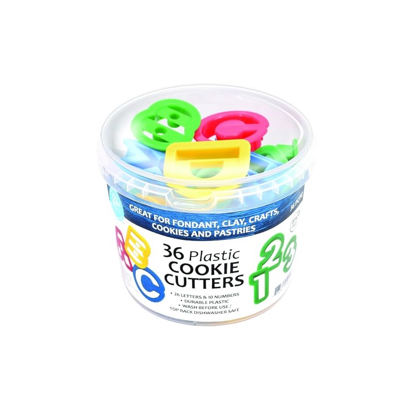 R&M International Alphabet and Number 1.5" Cookie Cutters, 36-Piece Bucket