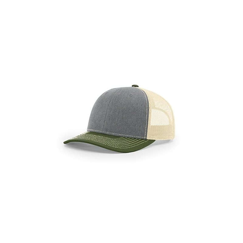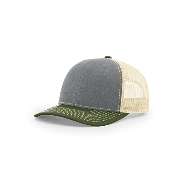 R RICHARDSON Unisex 112 Trucker Adjustable Snapback Baseball Cap, Heather Grey/Birch/Army Olive, One Size Fits Most