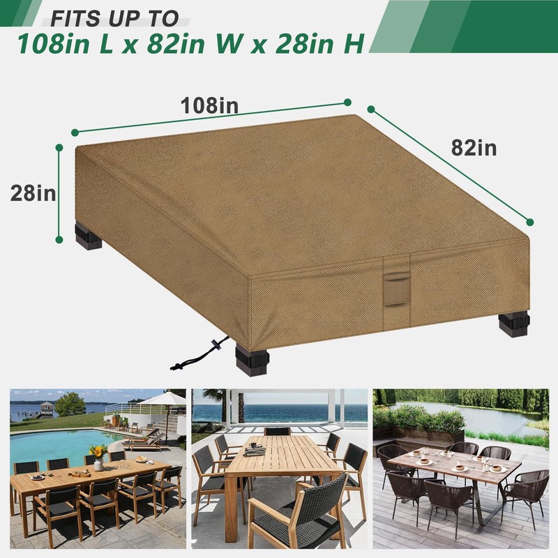 R RONDO Patio table Covers,600D Heavy Duty and Waterproof Outdoor Garden Patio Furniture Covers Fits Up to 108W x 82D x 28H inches