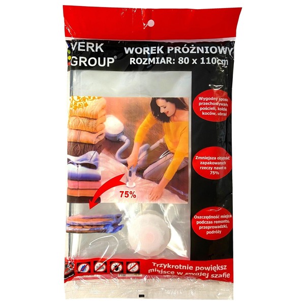 Vacuum bag 80 x 110 cm ideal for storing duvets or clothes. By using a vacuum cleaner, you can remove up to 70% of the volume.