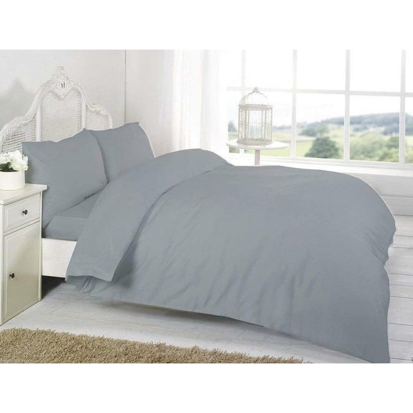 R&Z Plain Dyed Percale Polycotton Duvet Cover & 1 Pillow Case Bed Set (Grey/Silver, Single)