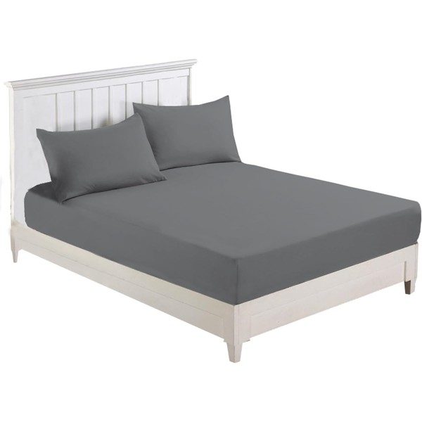 R&Z Plain Luxury Polycotton Fitted Sheet Single, Double, King, Super King, 4FT (Grey/Silver, King)
