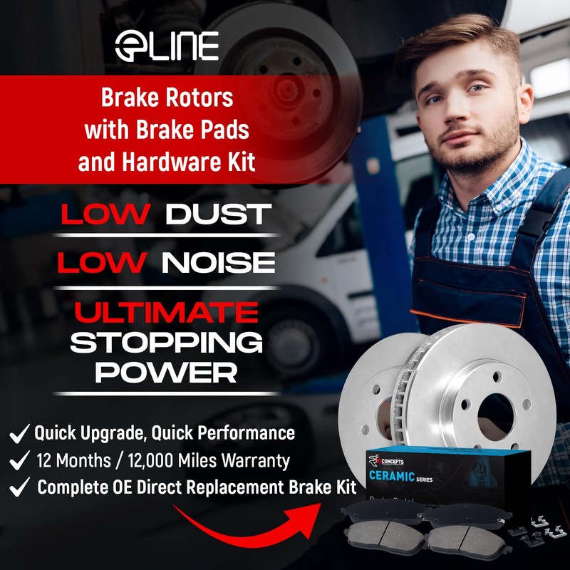 - All-in-One Complete Brake Kit Replacement: R1 Concepts eLine Series Front & Rear Brake Kit comes with (2) high performance brake rotors (4) performance brake pads and hardware