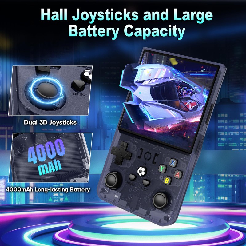 - 【On-the-Go Gaming with Longevity 】Designed for convenience, the R36MAX game console comes with a powerful 4000mAh battery that provides up to 6 hours of gameplay on a single charge. This makes it the perfect companion for your travels, ensuring you have entertainment at your fingertips wherever you go. With built-in speakers and a 3.5mm headphone jack, you can easily enjoy your games peacefully or share the fun with friends!