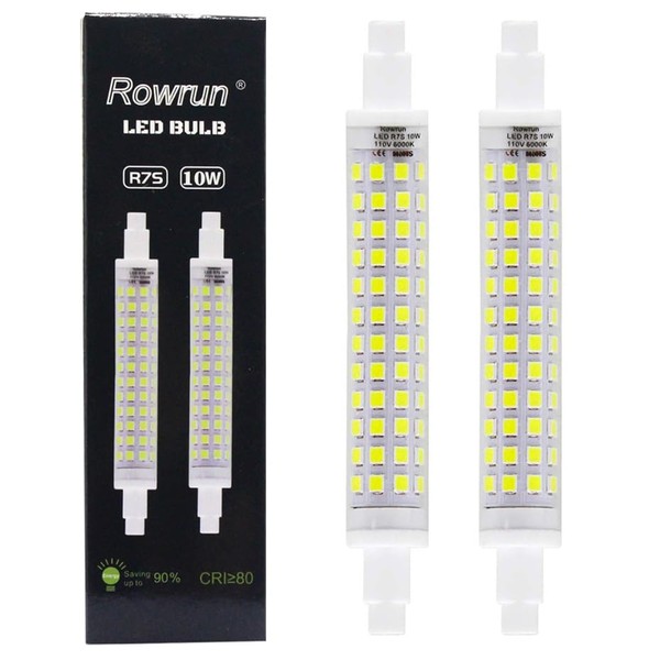 R7S LED Bulb 118mm Dimmable 3000K (Soft White) 10W (100-Watt Equivalent) 1000lm 2835SMD AC 110V 2-Pack by Rowrun