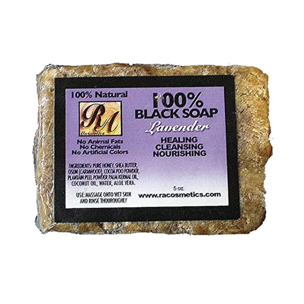 RA Cosmetics 100% Natural Black Soap with Lavender 5oz