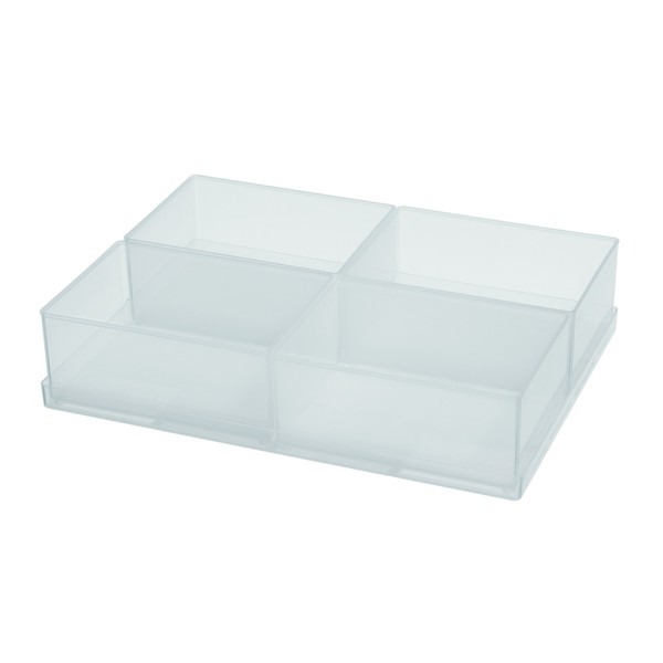- With the tray included in the box contents, you can also make simple and efficient divisions outside the Raaco storage systems, e.g. in drawers, workshop trolleys, workbenches and cupboards.